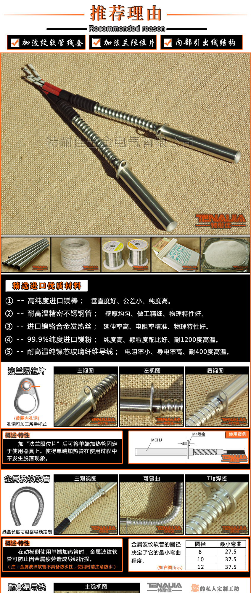 ●單頭加熱管各種管子材料對各種加熱介質(zhì)的耐腐蝕性能見:液體電加熱器選材表【注意:可能文件稍微比較大,若點擊不能立即加載,可以刷新一下加載頁面,即可顯示,若還是看不到,可以聯(lián)系我們】