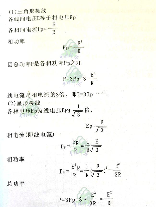 總功率P是各相功率之和P=3PP=3E^2/R